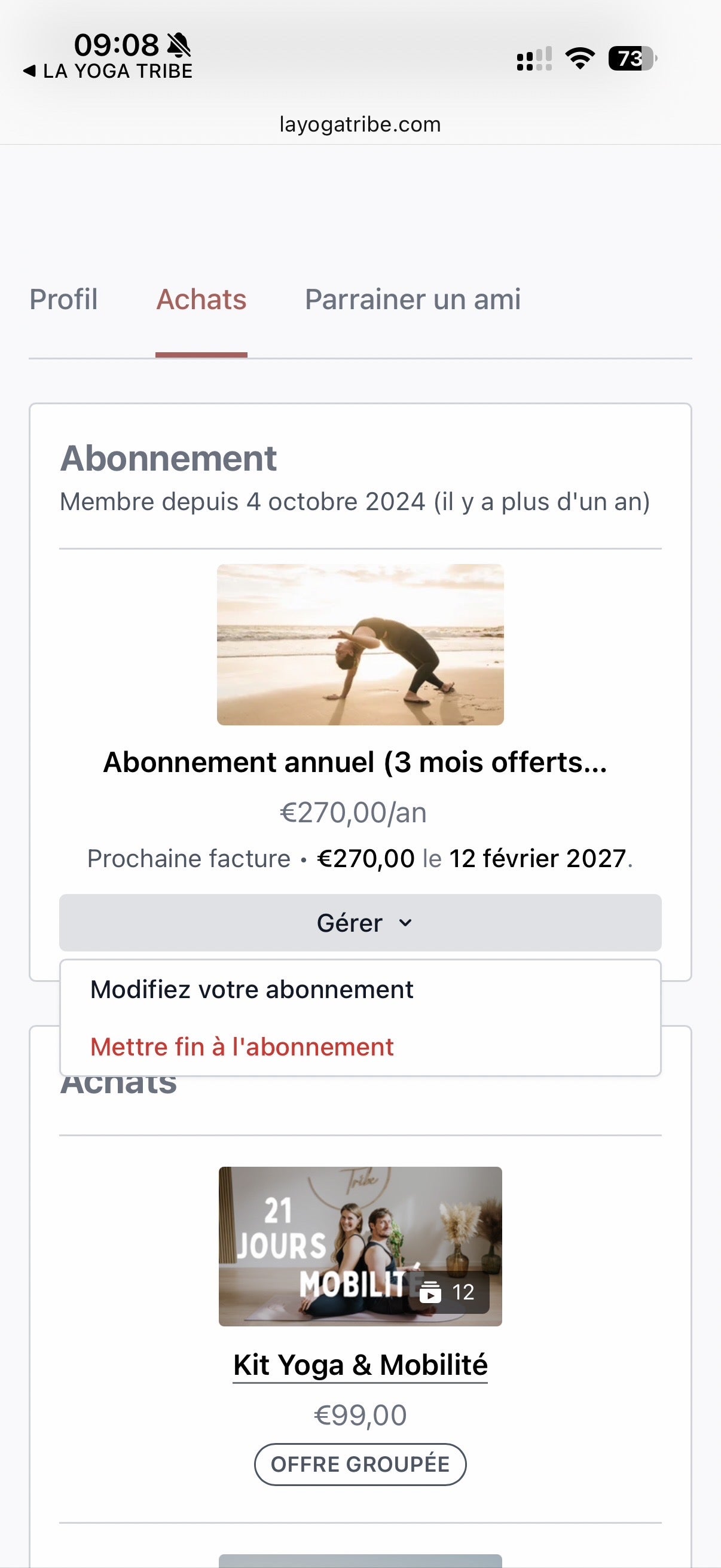 Ca se passe depuis le site, pas depuis l’app. Depuis là, tu pourras mettre fin à ton abonnement.